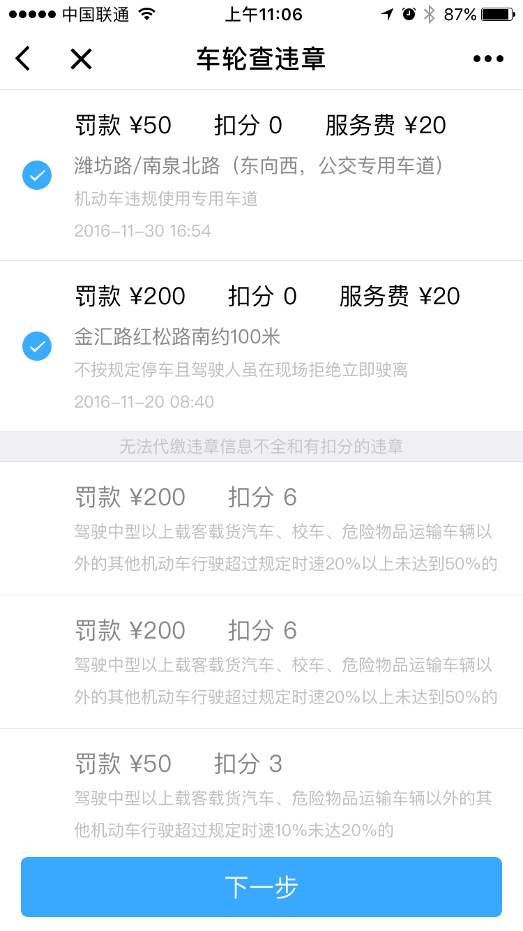 免费支持全国400+城市汽车交通违章查询,支持异地查询、多车查询