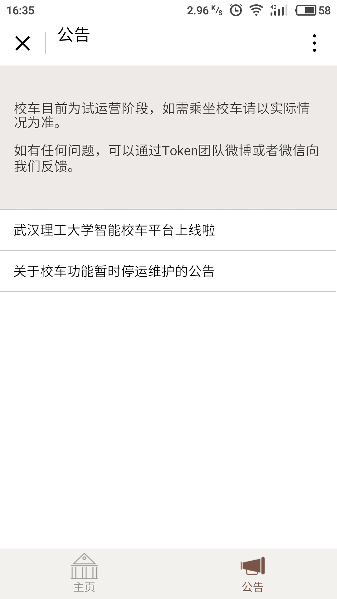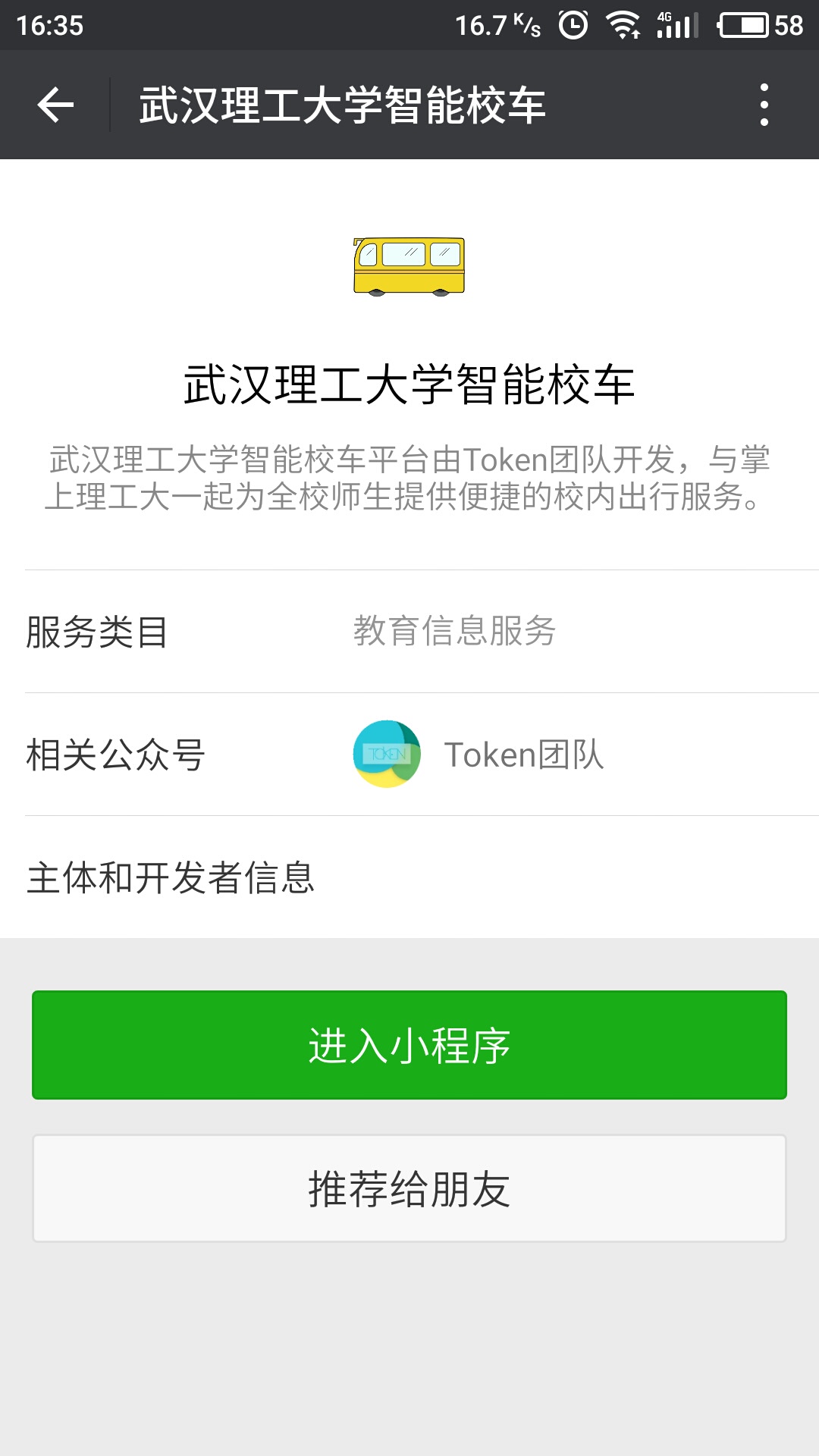 武汉理工大学智能校车平台由Token团队开发,与掌上理工大一起为全校师生提供便捷的校内出行服务。