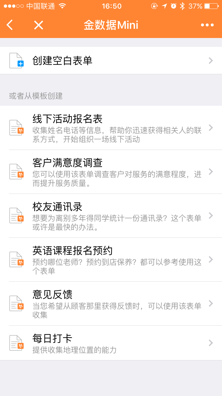 金数据mini微信小程序---一款人人可用的在线表单工具,帮助你收集和管理日常工作中的数据,可以让你快速在手机上创建表单。 金数据mini小程序特色内容: 用微信创建、分享调查表单,还能追踪调查数据。 统计社群里的各种报名信息很方便,还能直接看到占比数字。 使用方便,在微信中打开很快,比在PC端编辑要方便许多。