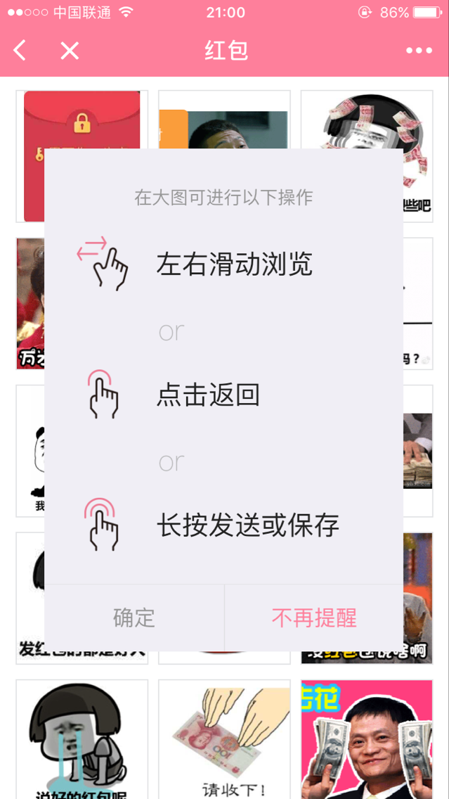 2、操作简单,左右滑动查看更多,长按保存或者一键发送到微信、QQ聊天界面。