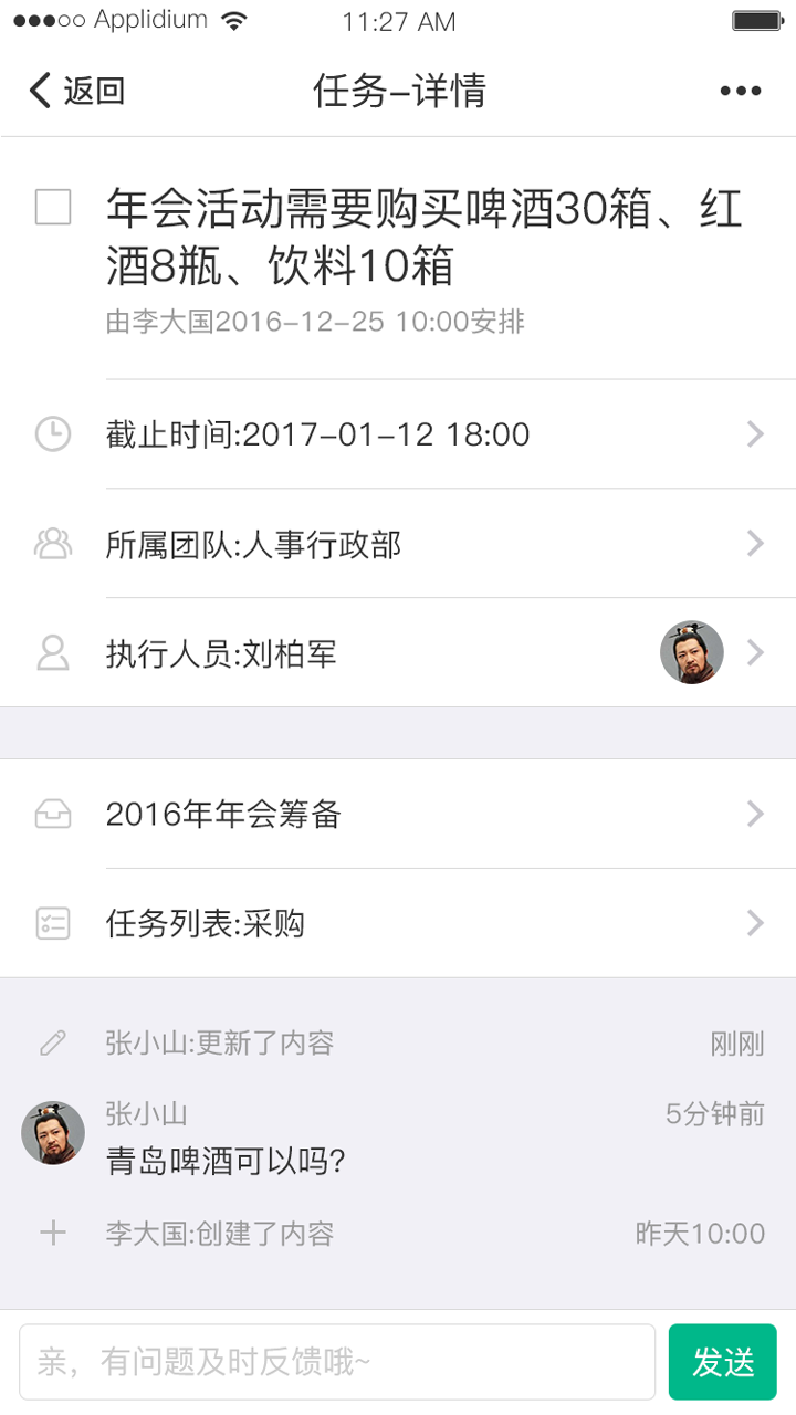 智协作微信小程序----帮助您将要做的事简单化,明确化,并形成任务责任落实到个人,直观的让每个人了解工作的进展。 智协作小程序特色内容: 多人协作,最怕的是事情不清晰、责任不明确、执行无反馈、信息不对称,智协作帮助您将事情清单化,并落实到每个责任人,所有成员都可以通过微信随时随地了解项目情况。