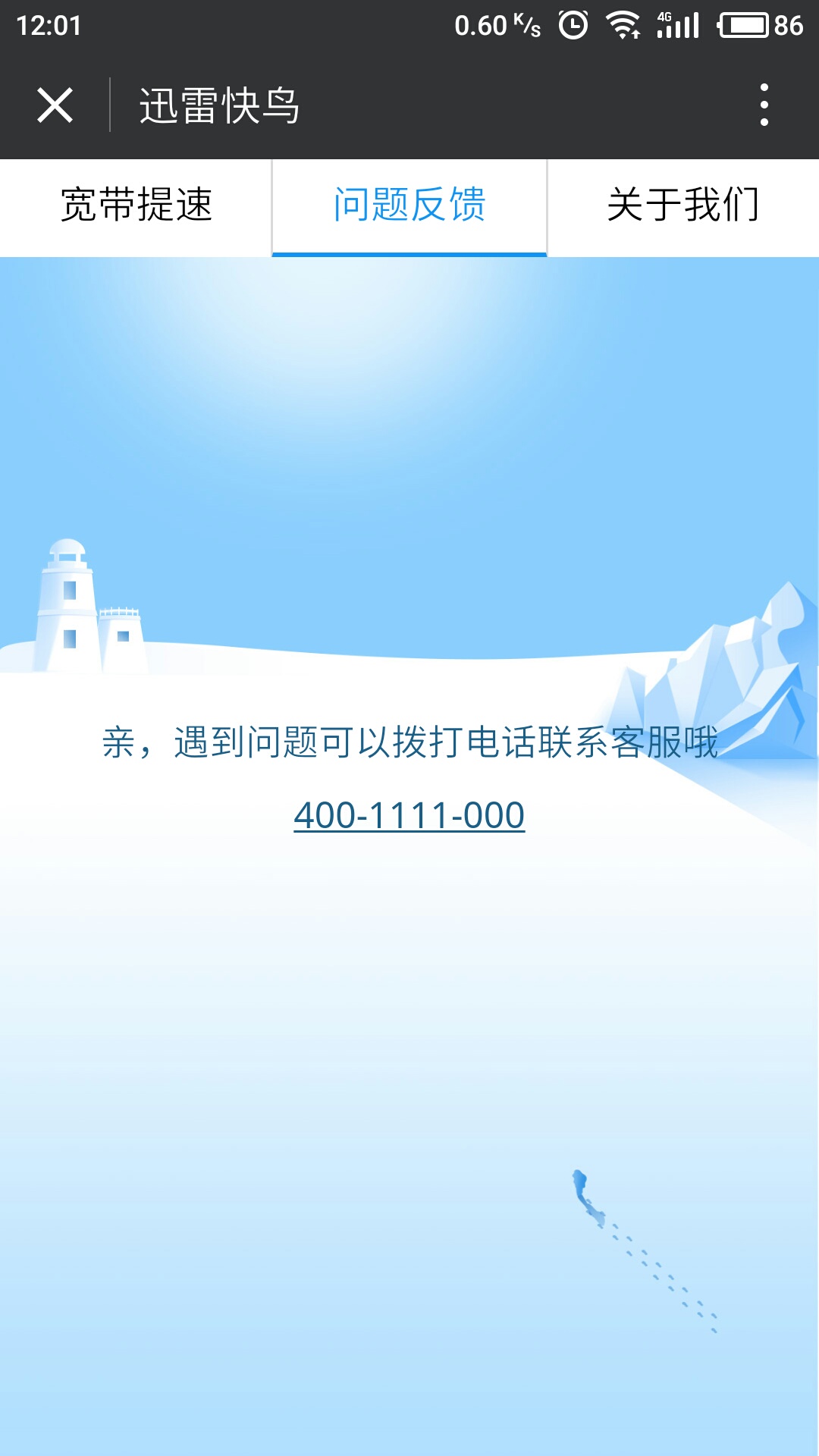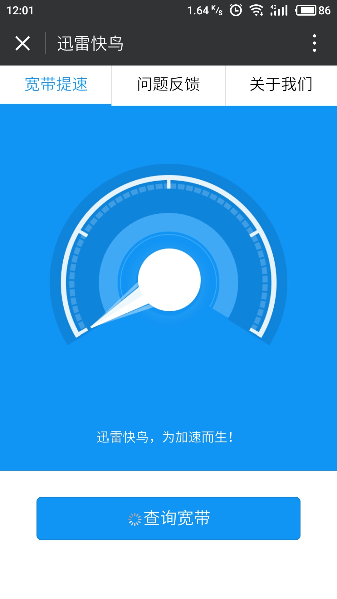 微信迅雷快鸟Lite小程序支持中国电信、中国联通宽带网络,可对家庭宽带最高提升至100M,是解决上网体验差,网速不给力的终极神器。 迅雷快鸟lite小程序内容: 迅雷快鸟是迅雷联合宽带运营商推出的一款致力于帮助用户解决宽带低、网速慢、上网体验差的专业级宽带加速软件。 迅雷快鸟lite小程序与app对比: 快鸟Lite小程序目前仅提供了【宽带提速】功能,以及问题反馈 快鸟app则提供了【宽带提速】、【流量节省】、【WiFi热点】三大功能 相比而言,当然是快鸟app功能更全,若你只需要