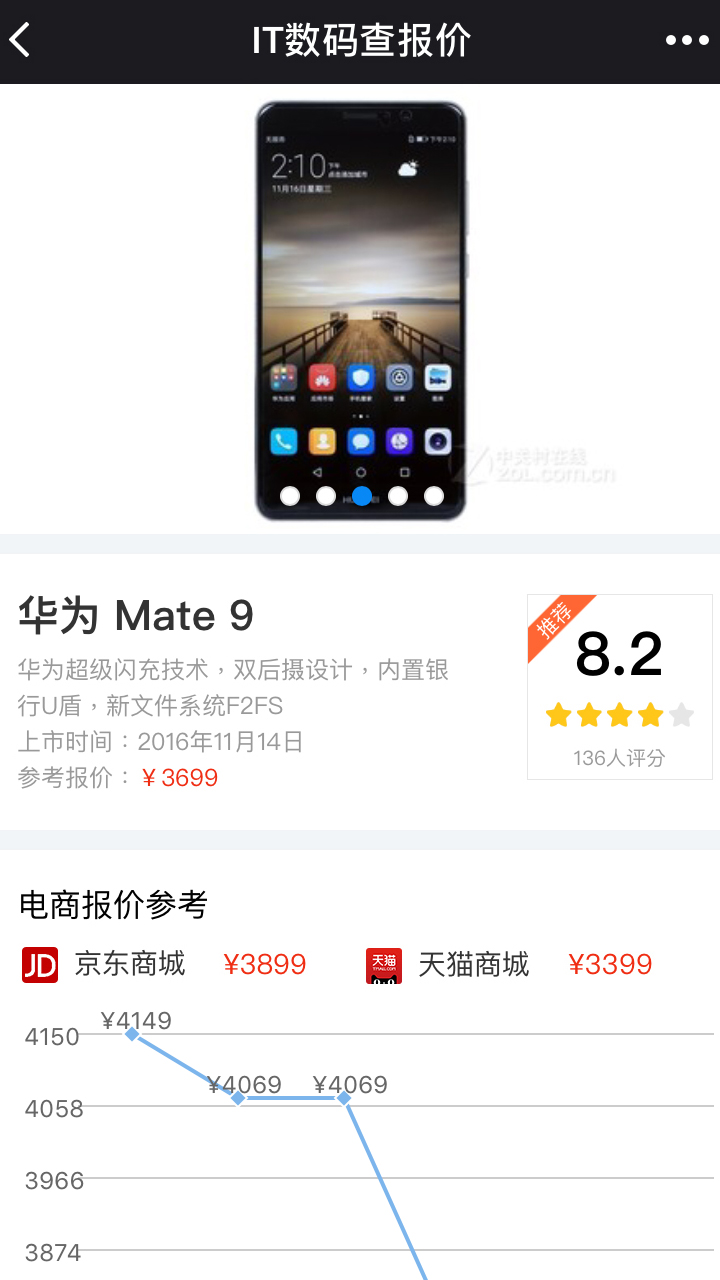 微信IT查报价小程序,是由中关村在线IT网站出品的,提供了各类手机平板、笔记本/台式电脑、数码相机/摄像机、耳机音响等数码产品的报价信息及产品详情。