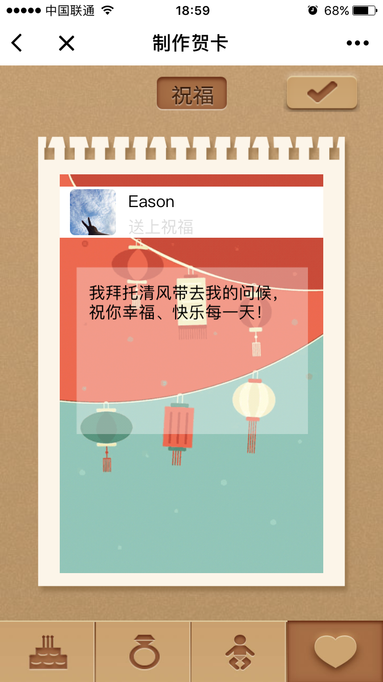 【省钱省力】一键群发,只需普通短信费用就可以送出精美节日贺卡。