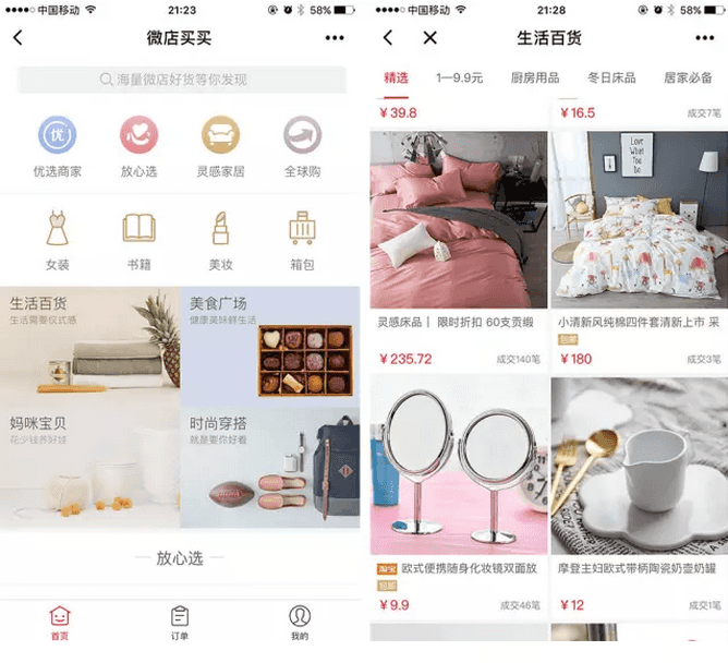 微店买买微信小程序----购物小程序,汇集各种商品,还有好物好店推荐,同时「微店买买」的账号和「微店」信息是同步的,让你的掌上购物更方便安全。