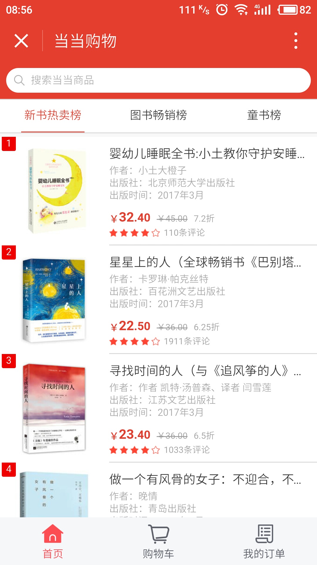 微信当当购物微信小程序,网上书城又小便利购买途径。当当网出品的这款购物小程序,一打开跃然于眼前的就各类畅销书,当然毕竟当当网是靠网上买书起家的,不过在搜索框中也能搜索到其它类型的商品哦!