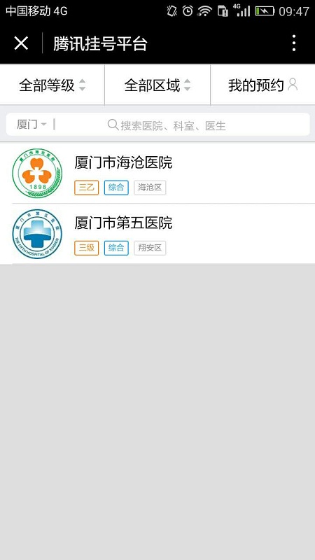 微信小程序上线了腾讯挂号平台官网打造的就医挂号工具,覆盖全国各大中小城市,可通过医院等级/区域范围搜索医院,并可网上挂号到某个科室,某个医生名下。 腾讯挂号平台小程序内容介绍: 腾讯推出的医疗挂号平台,覆盖多家医院,挂号无忧。