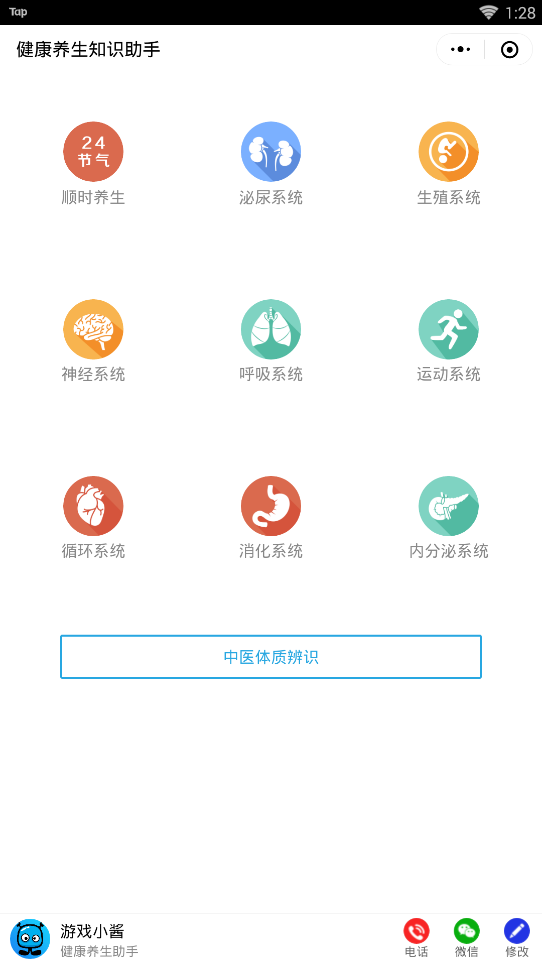 健康养生知识助手,提供了顺时养生、泌尿系统、生殖系统、神经系统、呼吸系统、运动系统、循环系统、消化系统以及内分泌系统等知识,并可进行中医体质辨别。 健康养生知识助手内容: 健康养生案例介绍