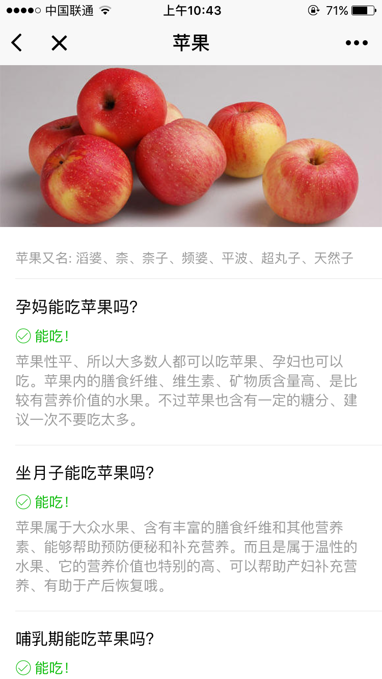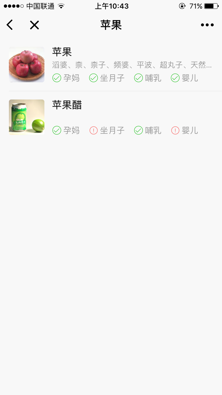 准妈妈们是否还在纠结这个能不能吃,那个会不会对胎儿造成影响?现在使用孕妈速查微信小程序,输入食物名称就能知道该不该吃,从主食到坚果、再到零食饮品都涉及到了。 小程序功能: 这个食物孕妈能不能吃?用孕妈速查,一查就知!
