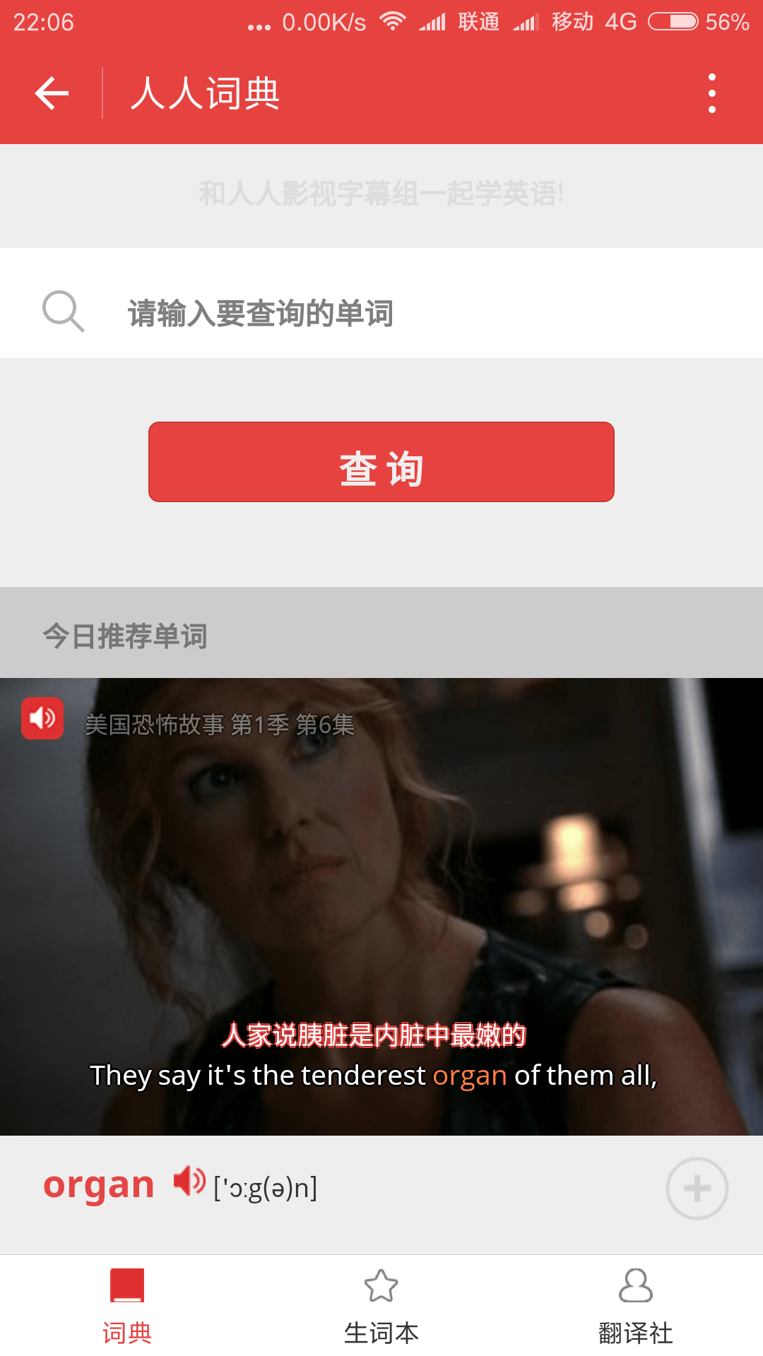 人人词典微信小程序,是由人人影视出品,积累多年的海外电视剧电影翻译经验,打造更多有趣味,更加图文并茂的单词语句解析,为你打来更多生动的学习方法。 人人词典小程序功能内容: 人人影视字幕组官方旗下产品,基于字幕组十年来积累的美剧日剧双语字幕大数据打造的的词典应用。 开创性的采用声像并茂的双语字幕作为例句来诠释单词。
