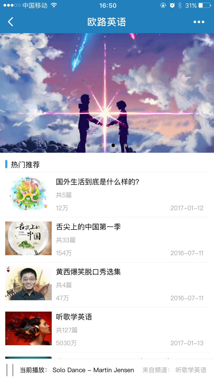 每日英语精选小程序,由欧路软件出品,是根据其栏目“每日英语听力”打造的微信小程序类应用,每日更新推荐听力资源,这里会有你想要的。 每日英语精选小程序功能内容: 欧路软件提供的在线英语学习平台 提供每日英语听力,阅读等英语学习资源