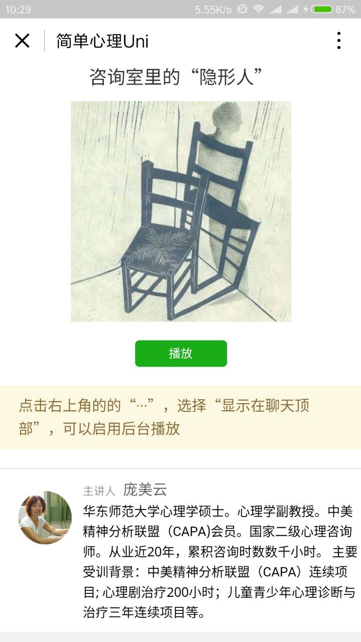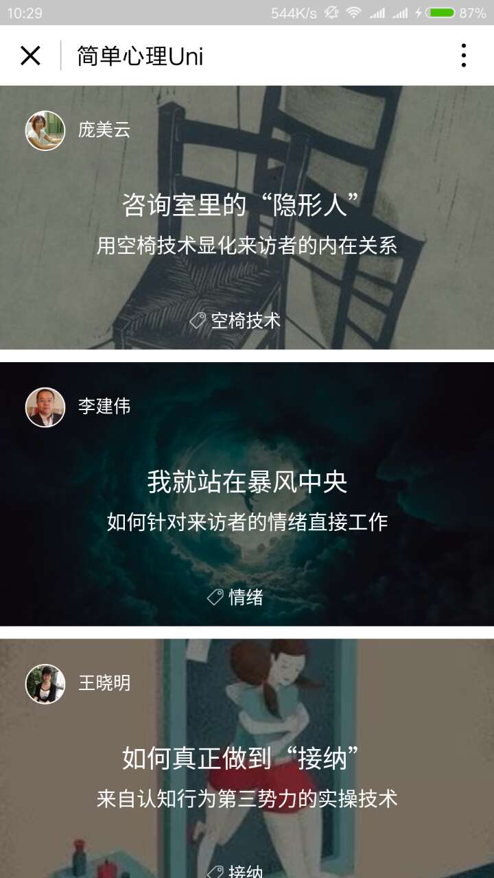 简单心理Uni+微信小程序,提供了超多心理师们的分析之道,内容中有提供音频可直接播放,节省你的精力,利用你的碎片化时间了解学习心理知识。 简单心理Uni小程序内容: 简单心理 Uni,为成长中的咨询师提供明晰的成长路径。