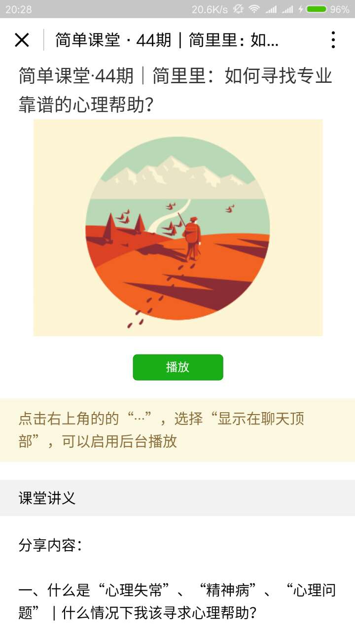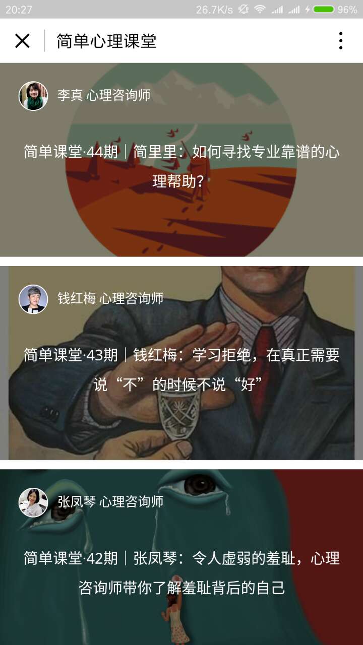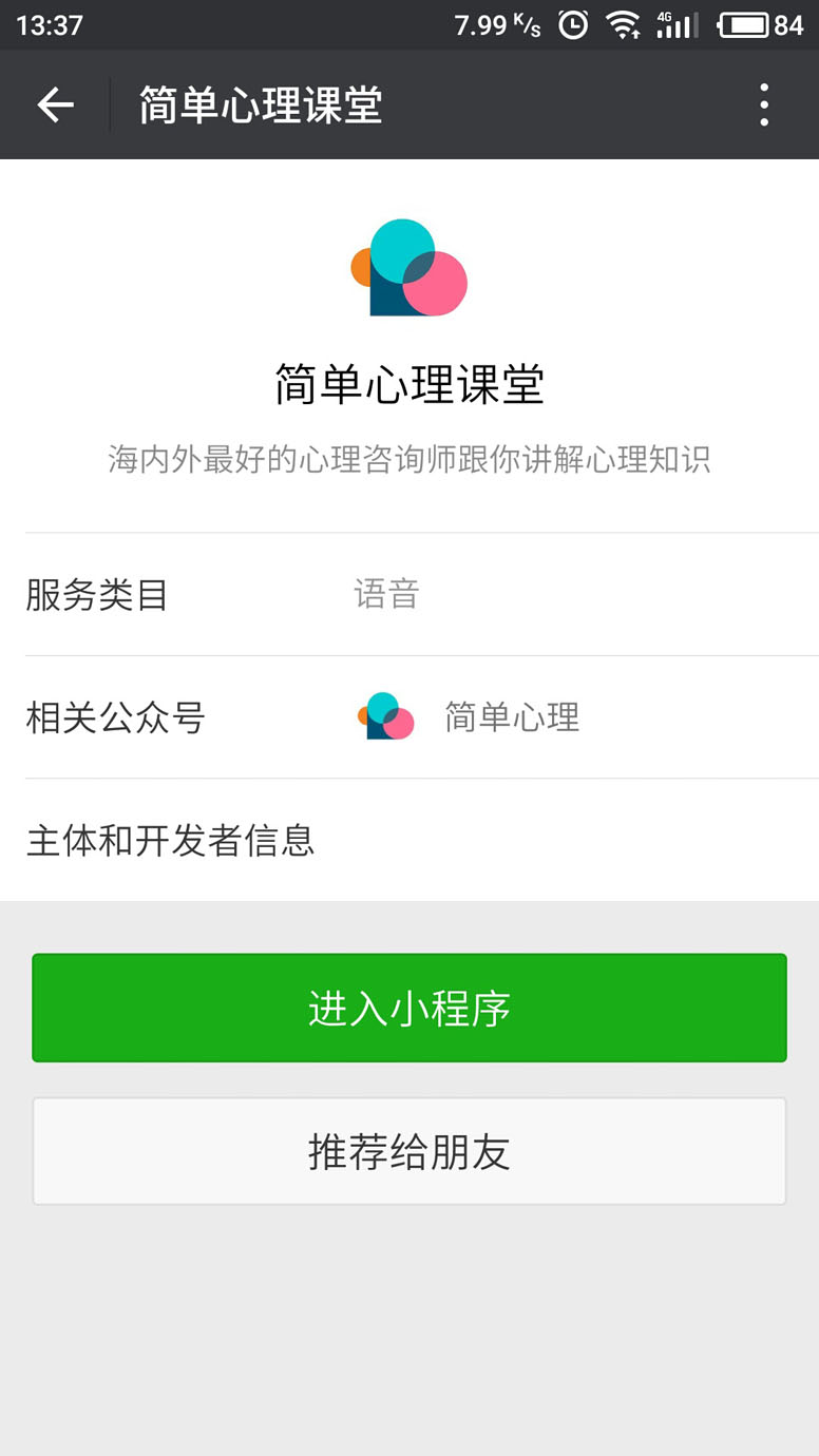简单心理课堂微信小程序,是由简单心理官方打造的心理知识语音讲解类程序,每周一个主题,每周一个心理咨询师为你讲解。 简单心理课堂小程序功能介绍: 海内外最好的心理咨询师跟你讲解心理知识