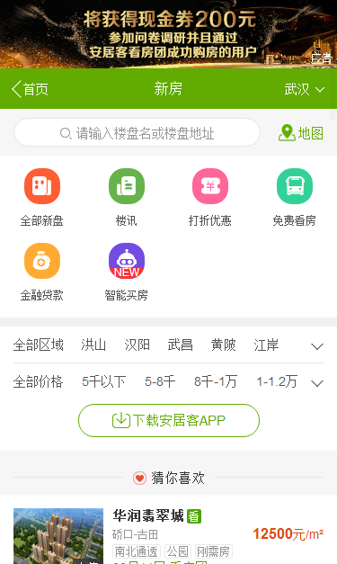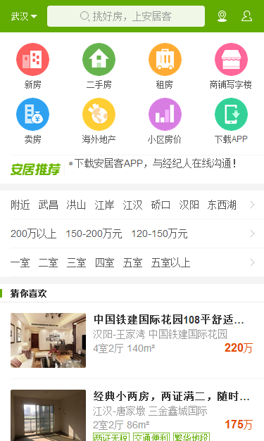 微信小程序版安居客还未发布,需要的可以进入安居客的移动网页版,一样可查看新房、二手房、租房、商铺写字楼等信息,为你带来最好的房源获取渠道。 移动网页版: 安居客手机在线版 入口:http://m.anjuke.com/ 平台优势: 覆盖全国 39 个城市,超过 300 万套的海量二手房房产信息,支持根据小区、地理位置、地图查找房源。 小程序未上线: 安居客微信小程序版未发布,需要的可以下载安居客手机app哦!