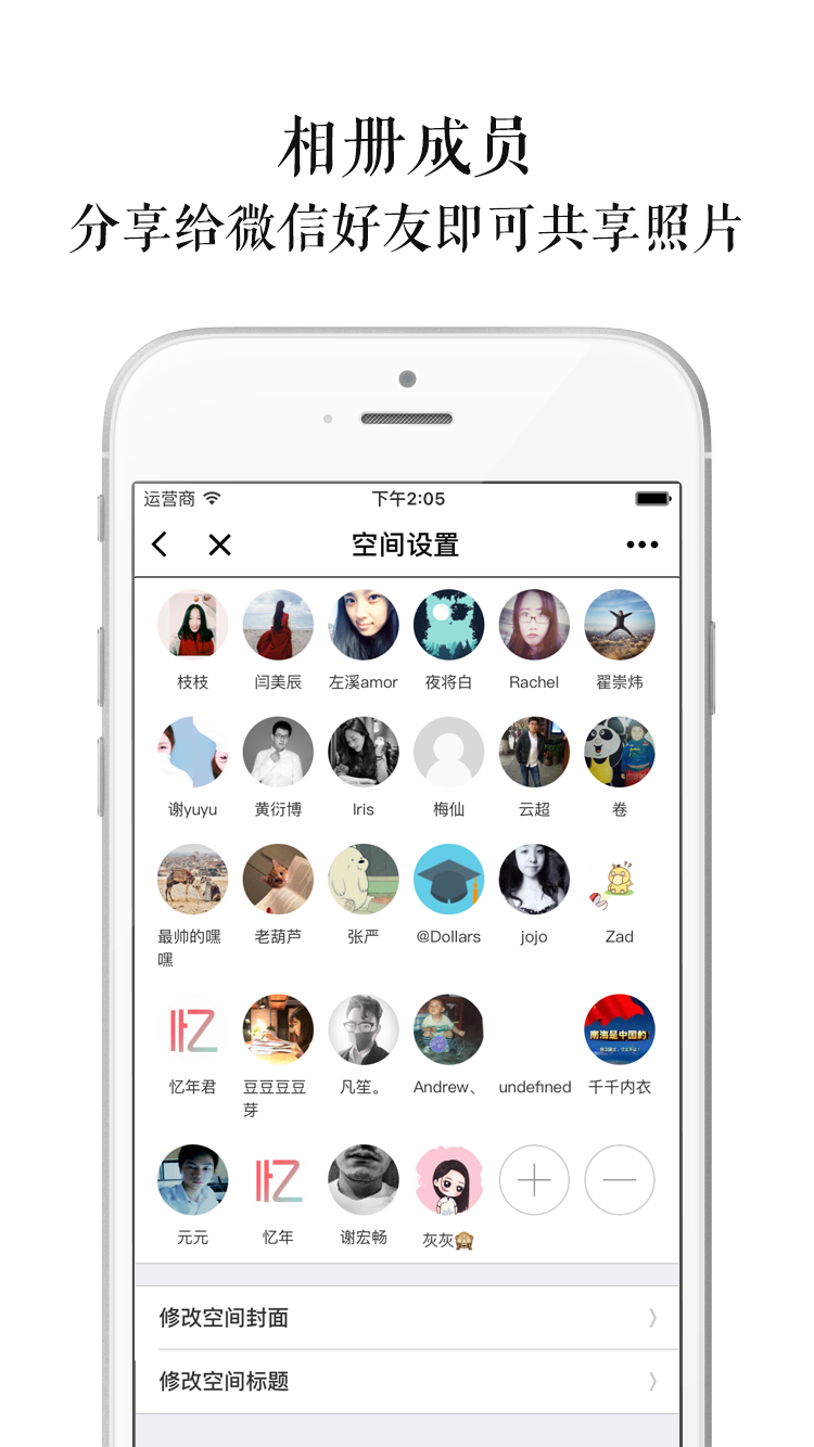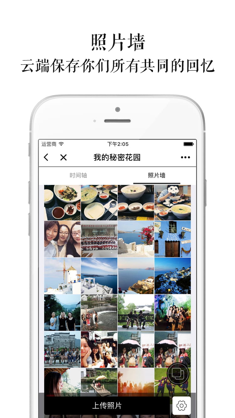 照片只有进入空间的小伙伴才能看到,并且云端永久储存在专属于你们的私密小空间。忆年想用一个个小而美的私密空间,为你记录所有值得分享的时刻。