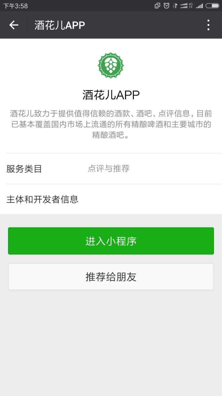 这款微信酒花儿App小程序,可以搜索啤酒、酒吧信息,并支持扫描查酒,还有精酿酒库、酒吧地图等功能。 酒花儿App小程序内容: 酒花儿致力于提供值得信赖的酒款、酒吧、点评信息,目前已基本覆盖国内市场上流通的所有精酿啤酒和主要城市的精酿酒吧。