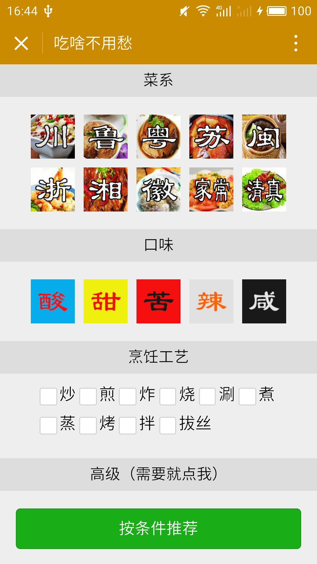吃啥不用愁微信小程序---美食推荐软件,吃货们的必备神器,让世界美食随时与你分享体验,让吃货们聚在一起,开心享受美食。 吃啥不用愁小程序特色内容: 解决你不知道吃什么的问题,可以根据你的选择智能推荐,也可以由小程序随意推荐,可以选择自己试着做,也以出门到附近餐馆碰碰运气,有了小程序,吃啥不用愁! 小编说: 作为一个每天不知道吃啥的重症患者,小编看到这款小程序时是很激动的,如果真的能帮我找到合口的美食,那就不需要每次把大众点评从头翻到尾,在从尾翻到头,最后只能再打开美团再来一遍……