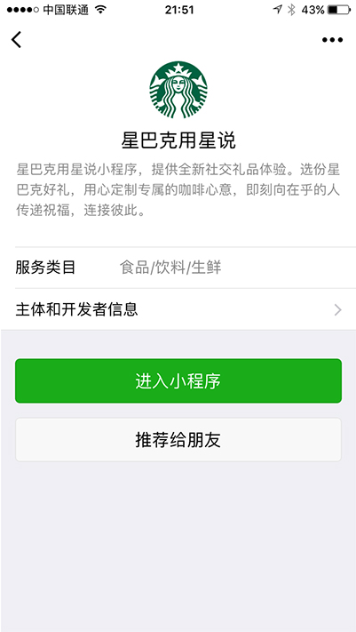 - 名称:星巴克用星说微信小程序 发布时间:2021-01-02 14:22:47