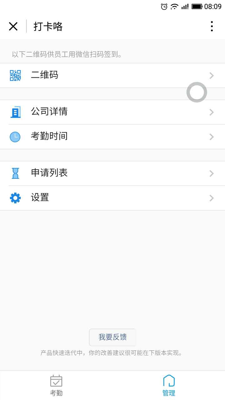 微信打卡咯小程序,为大家带来了超便捷的打开方式。使用打卡咯小程序,上班下班打卡扫描二维码即可,外出出勤一样也能用到哦! 打卡咯小程序内容: 为中小企业、团队、组织解决基本考勤问题的上下班打卡小程序。 打卡咯小程序特色介绍: 从此床头的闹钟又变多了。 对于职员而言,只要打开「打卡咯」小程序轻轻一点,就能方便打卡。 而企业可以通过健全的管理功能,进行包括考勤时间、打卡方式等个性化设置