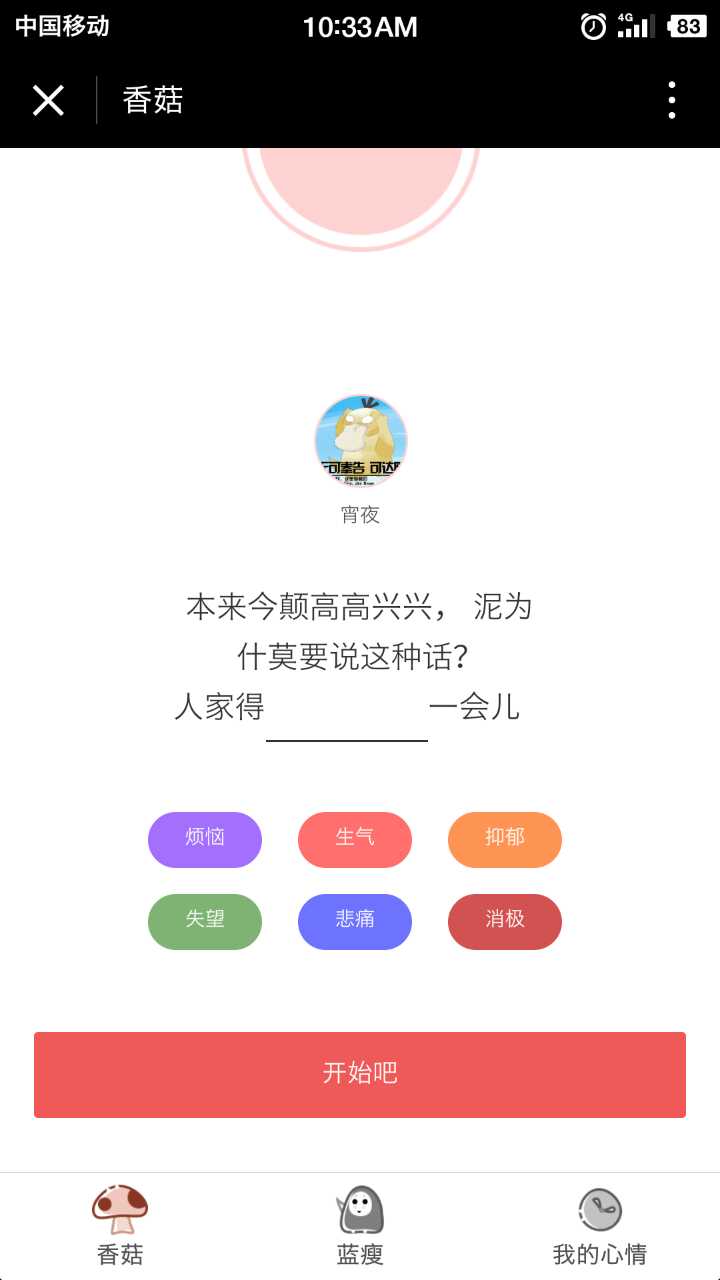 微信情绪管理利器微信小程序,是各位容易情绪化网友的必备工具。使用情绪管理利器,不管是烦劳、生气、抑郁、失望、亦或是悲痛,还是消极,都能用它来管理你的小情绪。 微信情绪管理利器小程序内容: 蓝瘦,香菇~情绪低落时,可以通过美食、嗨歌、聊天等来赶走坏情绪,提升幸福感~手机扣到桌面上,好好发泄一下吧! 小编点评: 想哭?那就哭吧,别哭太久就是。 要每分每秒都开心,这是不可能的呀。这款小程序,给你一个机会正视负面情绪,并学会控制情绪。下次心情不好想要暴走,就用它来「正确疏导」吧。