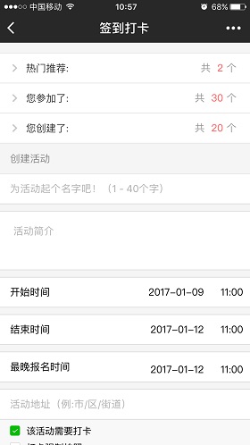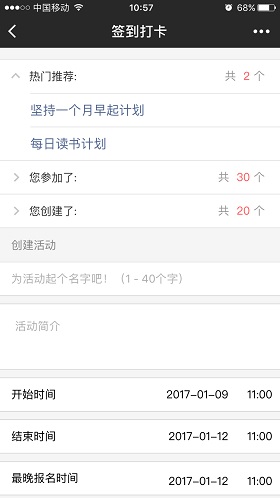为活动发起人提供创建、管理、组织签到打卡活动的工具,同时能让用户签到,打卡变得十分便捷的小程序。