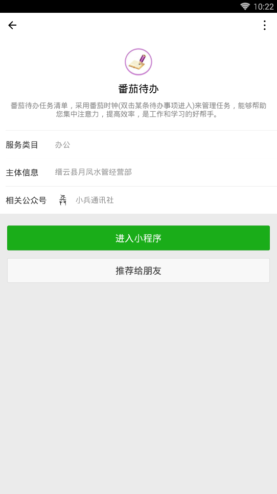 番茄待办小程序,是由小兵通讯社个人打造,该微信小程序将番茄工作法和待办事项糅合在一起,既是一个任务清单工具,也是一个提升工作效率的好帮手。 番茄待办小程序官方内容: 番茄待办任务清单,采用番茄时钟(双击某条待办事项进入)来管理任务,能够帮助您击中注意力,提高效率,是工作和学习的好帮手。